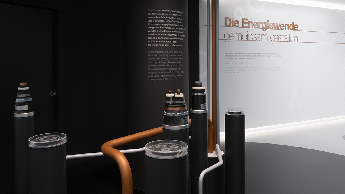 Eine zentrale Herausforderung bestand darin, den Showroom auf Augenhöhe der Besuchenden zu gestalten und technisch komplexe Zusammenhänge einfach und verständlich zu präsentieren. Einer der Hauptaspekte ist dabei die Akzeptanz für große Infrastrukturprojekte zu schaffen, welche die Grundlage für nachhaltige Stromgewinnung sind.